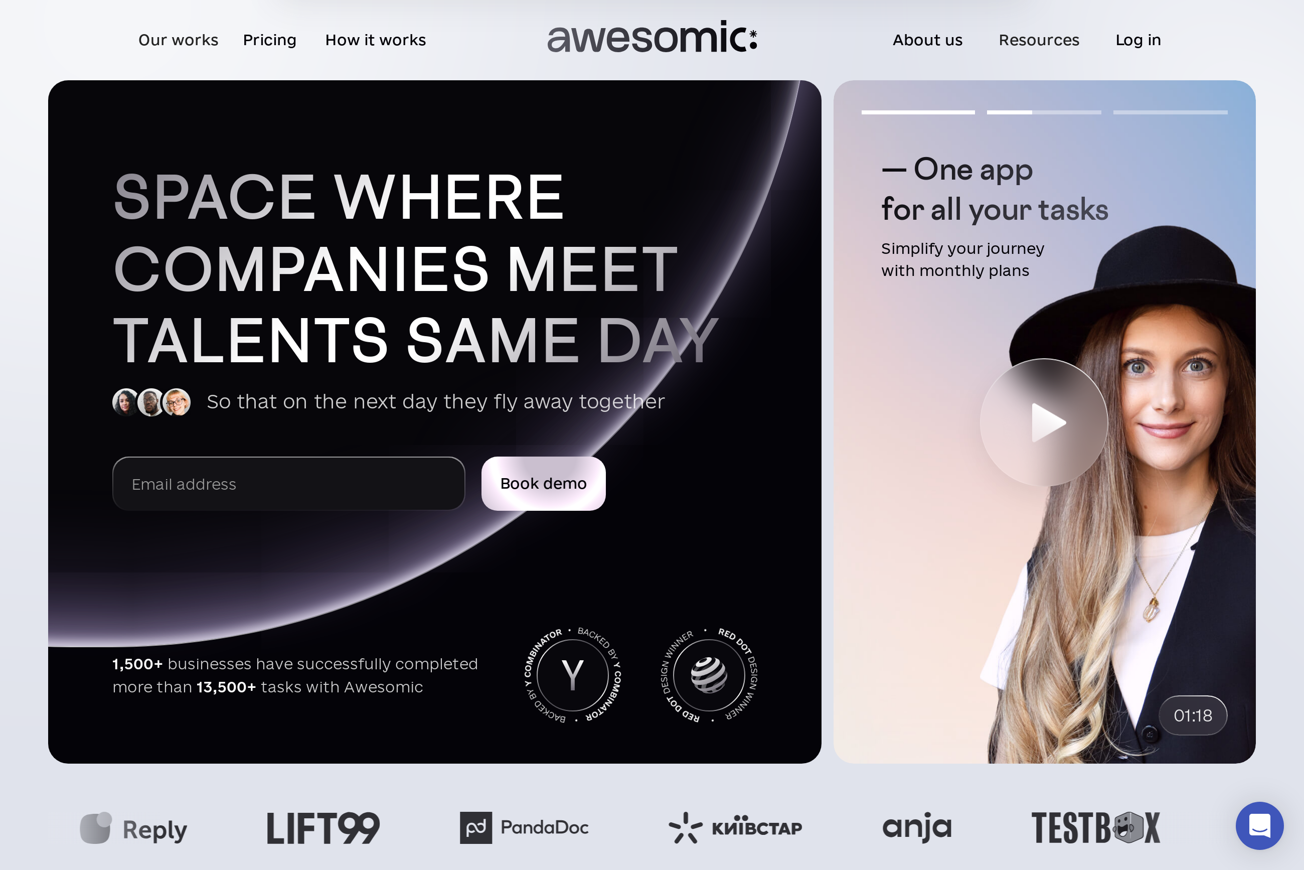Awesomic, founded by Roman Sevastyanov and Stacy, is an app that matches design tasks with the best-fit designer. They started by applying the shared economy principle to high-end design, facilitating connections between businesses and designers. The company has seen significant growth, serving over 250 companies with more than 2,000 design tasks completed last year.